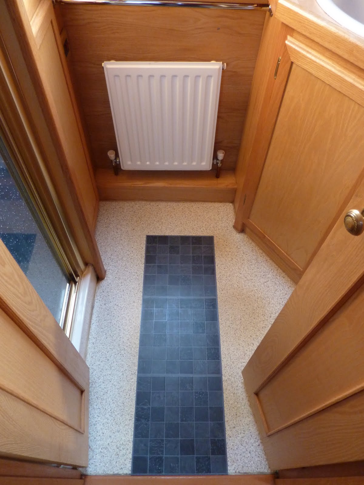 This morning we were up fairly early because we wanted to get some more jobs done.  Adrian headed into Rugby for a few bits of shopping, while I started work on the bathroom floor, beginning with a good scrub and dry.  Here's the 'Before' picture.