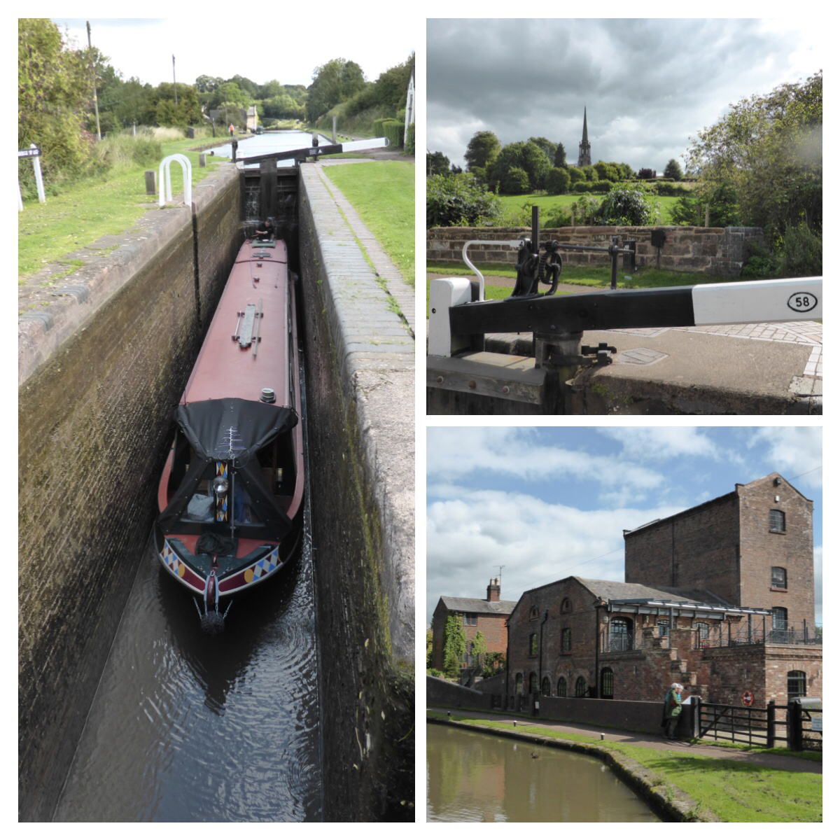 We entered the top lock at 12.30. The first ten took us an hour and ten minutes. The second ten took an hour and five minutes. We'd got into a very efficient rhythm, with Adrian doing the offside paddles, then getting back on the boat, while I did the towpath side and then walking down to set the next lock. We crossed with a couple of boats on the way, meaning a few locks were in our favour. After twenty locks we caught up with a boat in front, who weren't quite as efficient as us, so setting the next lock often included closing up after them. Consequently, the final ten locks took an hour and a quarter. However, three and a half hours for all thirty locks really isn't bad at all.